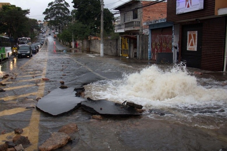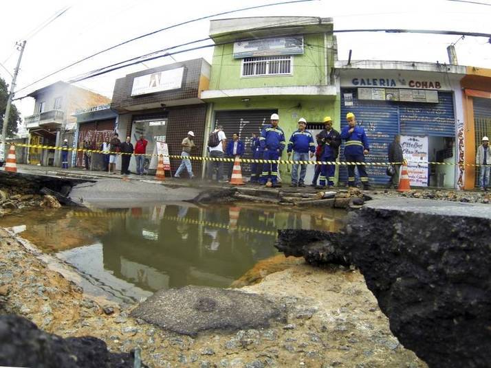 Em meio a pior crise hídrica da história de São Paulo, uma adutora da Sabesp rompeu-se no começo manhã desta terça-feira (21), na avenida Elísio Teixeira Leite, na zona norte, na altura no número 7000, na zona norte de São Paulo